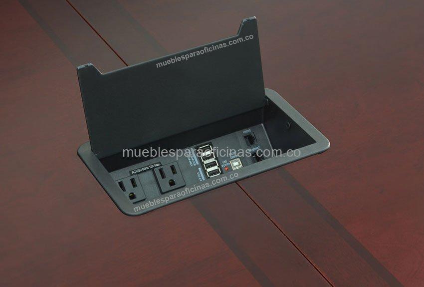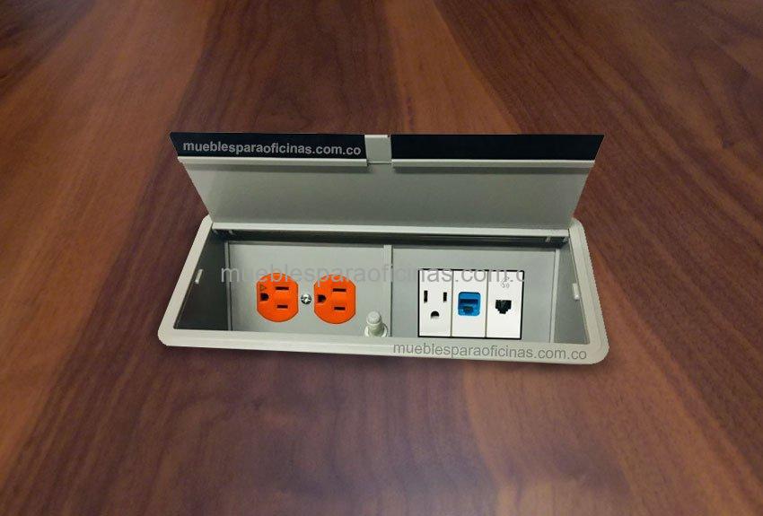 Nuestros Grommet eléctricos o cajas de conectividad están diseñados para hacer que los espacios de trabajo como mesas de juntas o escritorios se vean limpios y organizados, sin cables o extensiones a la vista que le quiten elegancia a su entorno. Usted tendrá conexiones a la mano para todos sus dispositivos como video beam, televisores, móviles o portátiles.
